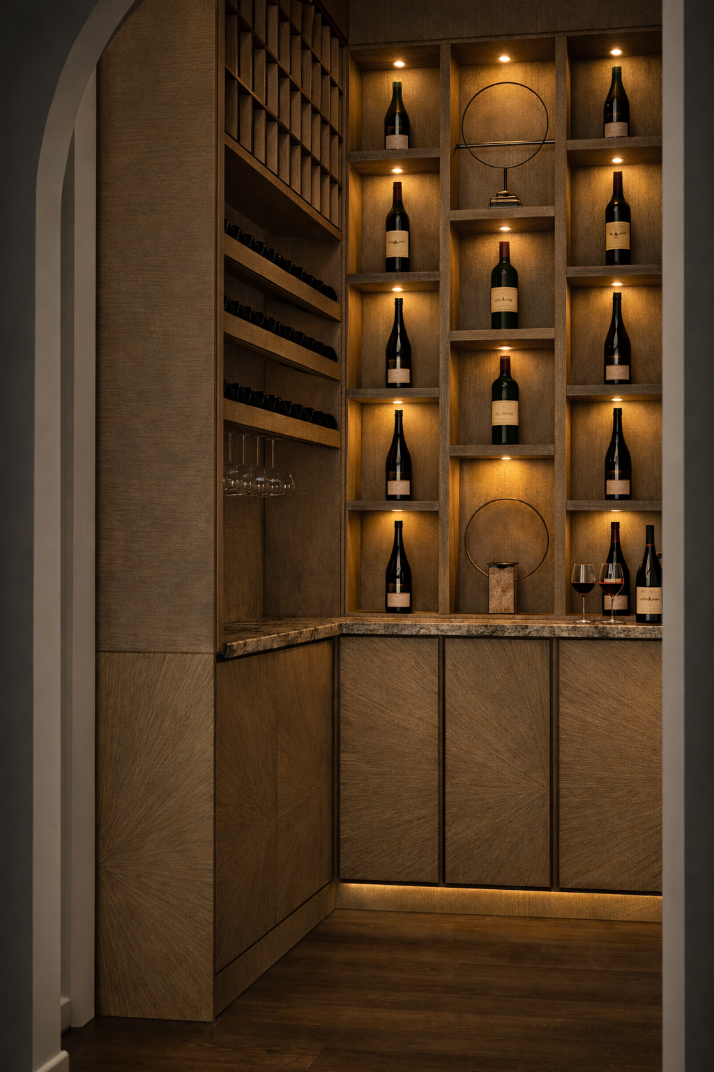 Spaces designed include a custom dining room, wine cellar, and laundry room.